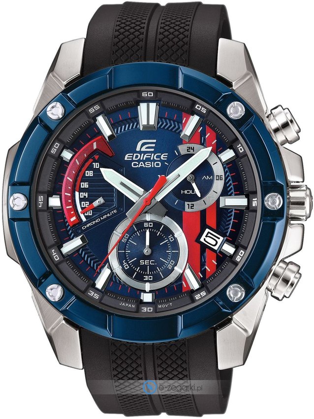 Zegarek EFR-559TRP-2AER wyposażony jest w mechanizm zasilany klasyczną baterią kwarcową. Pasek zrobiony jest z wysokiej jakości tworzywa sztucznego.