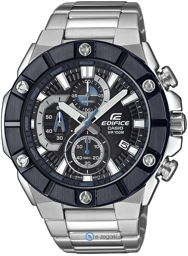 Zasilanie zegarka EFR-569DB-1AVUEF to normalna bateria kwarcowa. Odporna na korozję oraz oddziaływanie czynników atmosferycznych bransoleta koloru srebrnego cechuje się jakością, a także trwałością.