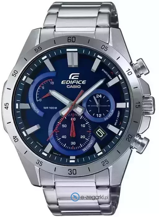 Zegarek EFR-573D-2AVUEF zasilany jest bateryjnie - ogniwo kwarcowe. Wytrzymała bransoleta jest w kolorze srebrnym zrobiona ze stali nierdzewnej zapewnia wysoką jakość i trwałość.
