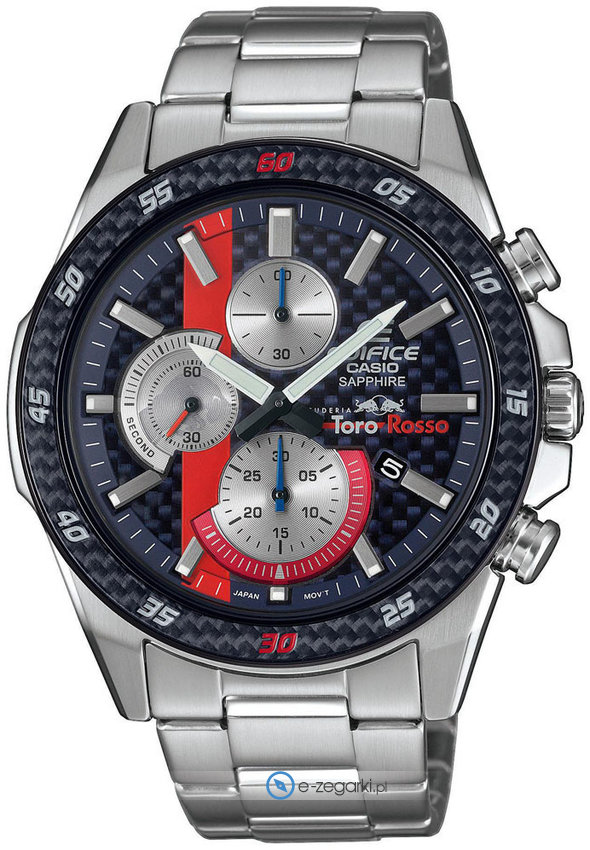 Zegarek EFR-S567TR-2AER posiada kwarcowy mechanizm zasilany klasyczną baterią. Wytrzymała bransoleta koloru srebrnego wykonana ze stali nierdzewnej zapewnia dużo lepszą jakość i trwałość.