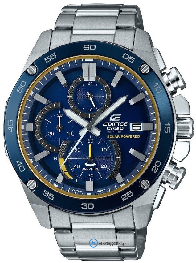 Zegarek EFS-S500DB-2AVUEF został wyposażony w mechanizm solarny zasilany dowolnym źródłem światła. Wytrzymała bransoleta wykonana ze stali nierdzewnej gwarantuje wysoką jakość oraz trwałość.