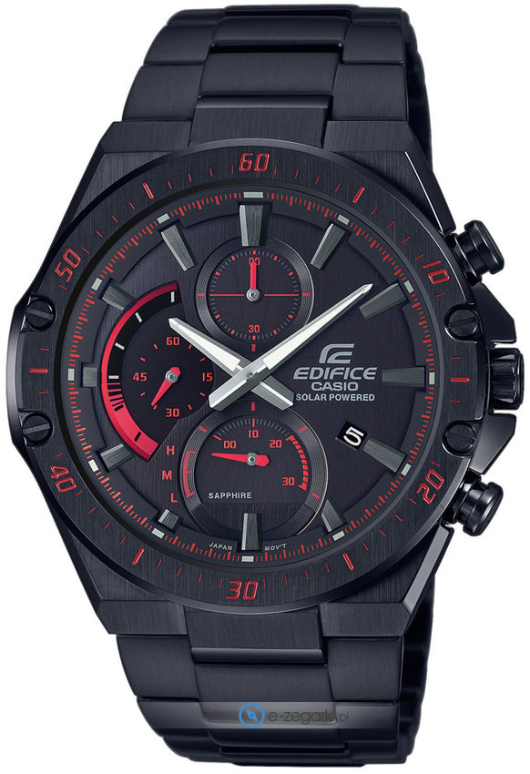 Zegarek EFS-S560DC-1AVUEF został wyposażony w mechanizm solarny zasilany jakimkolwiek źródłem światła. Odporna na korozję oraz działanie czynników atmosferycznych bransoleta jest w kolorze czarnym cechuje się jakością, a także trwałością.