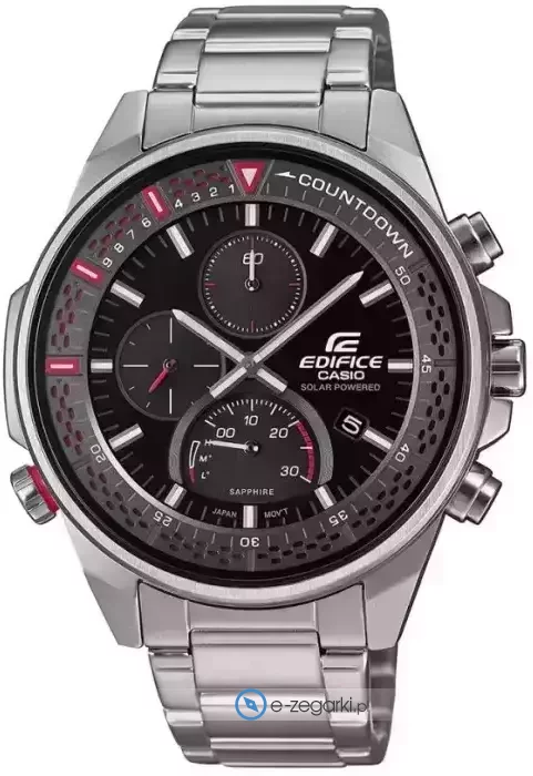 Zegarek męski EFS-S590D-1AV marki Casio to dobre połączenie funkcjonalności oraz modnego designu. Model ten występuje w kolekcji Casio Edifice. Tarcza zegarka jest w kolorze czarnym. Zaprezentowana metodą analogową aktualna godzina jest czytelna i łatwa do odczytania. Koperta w barwach koloru srebrnego szeroka jest na 50 mm oraz ma grubość 50 mm - w kształcie okrągłym.