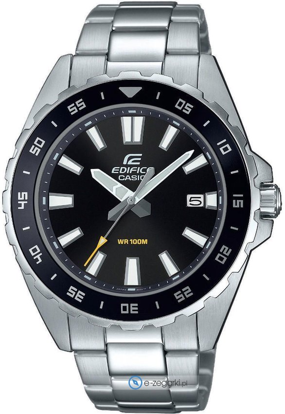 Casio EFV-130D-1AVUEF - męski zegarek kierowany dla osób szukających zegarka z rodziny Casio Edifice. Niebanalną konstrukcję czasomierza uzyskano dzięki tarczy w kolorze czarnym. Zaprezentowana metodą analogową aktualna godzina jest czytelna i łatwa do odczytania. Koperta w odcieniach koloru srebrnego szeroka jest na 43.8 mm oraz ma grubość 10.8 mm - w kształcie okrągłym.