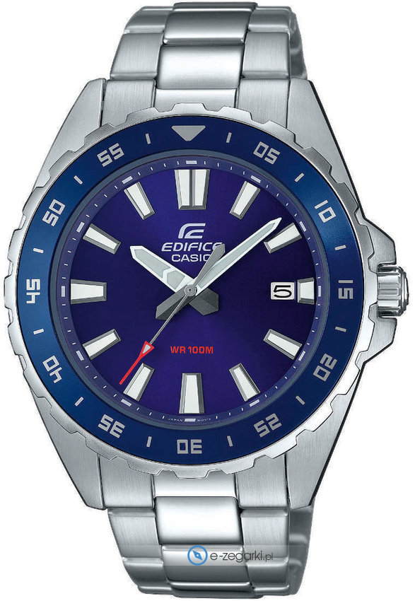 Zegarek EFV-130D-2AVUEF marki Casio to gustowny zegarek naręczny męski, który posiada ciekawe rozwiązania i funkcje. Model ten występuje w kolekcji Casio Edifice. Ciekawą konstrukcję czasomierza osiągnięto dzięki tarczy w kolorze granatowym. Zegarek ten prezentuje aktualny czas w formacie analogowym dzięki temu odczyt jest bezproblemowy. Koperta w barwach koloru srebrnego szeroka jest na 43.8 mm oraz ma grubość 10.8 mm - w kształcie okrągłym.