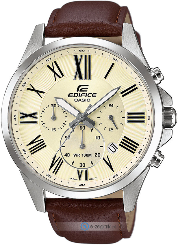 Zegarek EFV-500L-7AVUEF posiada kwarcowy mechanizm zasilany tradycyjną baterią. Pasek zrobiony jest z wysokiej jakości skóry zapewniającej trwałość i komfort noszenia.