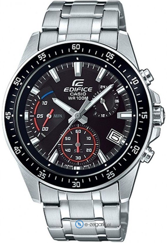 Model męski EFV-540D-1AVUEF marki Casio należy do rodziny Casio Edifice. Tarcza zegarka jest w kolorze czarnym. Aktualna godzina prezentowana jest w sposób analogowy co niezmiernie łatwo pozwala ją odczytać. Koperta szeroka jest na 42 mm oraz ma grubość 12 mm - w kształcie okrągłym.