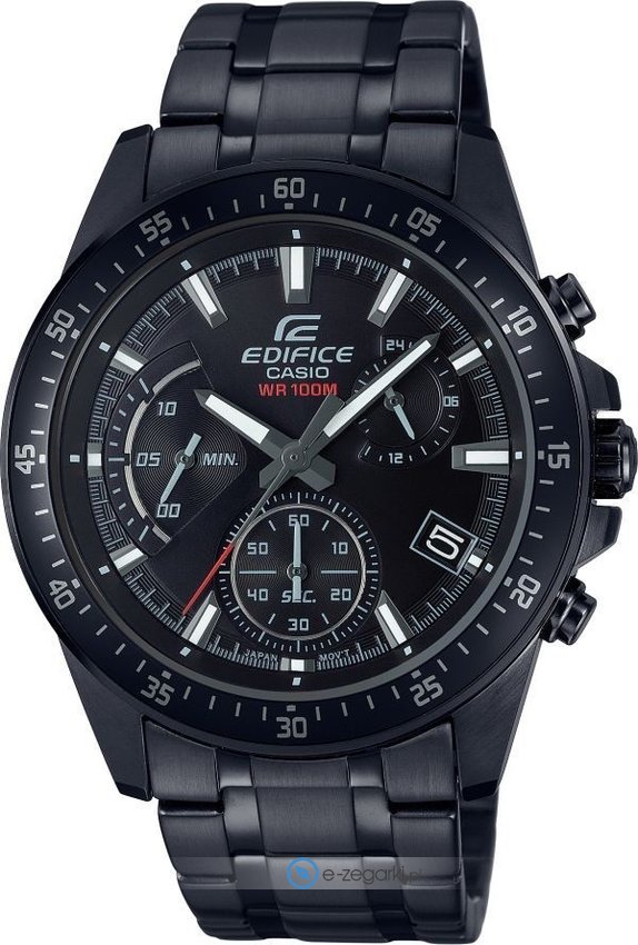 Model męski EFV-540DC-1AVUEF z kolekcji Casio Edifice marki Casio. Nieschematyczny wygląd zegarka osiągnięto m.in. poprzez cyferblat w kolorze czarnym. Pokazana metodą analogową bieżąca godzina jest czytelna i prosta do odczytania. Koperta została ozdobiona kolorem czarnym szeroka jest na 44 mm oraz ma grubość 12 mm - cechuje się okrągłym kształtem.