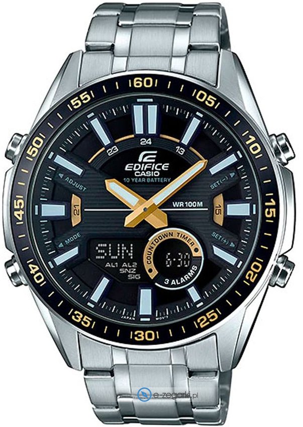 Zegarek męski EFV-C100D-1BVEF marki Casio to idealne połączenie funkcjonalności i ciekawego designu. Model ten zalicza się do kolekcji Casio Edifice. Ciekawą konstrukcję czasomierza uzyskano z pomocą tarczy w kolorze czarnym. Zegarek ten prezentuje aktualny czas w formacie analogowo - cyfrowym dzięki czemu odczyt jest bardzo łatwy. Koperta szeroka jest na 45 mm oraz ma grubość 14.2 mm - w kształcie okrągłym.