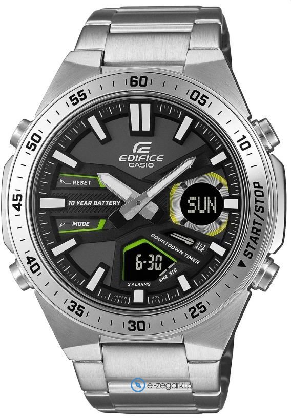 Zegarek EFV-C110D-1A3VEF posiada kwarcowy mechanizm zasilany klasyczną baterią. Wytrzymała bransoleta w tonacji koloru srebrnego wykonana ze stali nierdzewnej gwarantuje wysoką jakość i trwałość.
