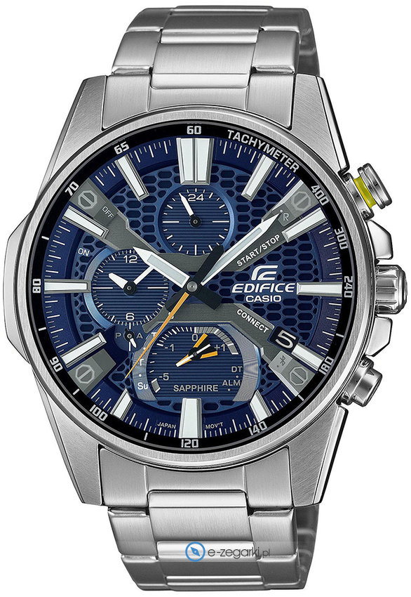Zegarek EQB-1200D-2AER marki Casio to elegancki zegarek naręczny męski, który jest wyposażony w pomysłowe rozwiązania i funkcje. Model ten jest z kolekcji Casio Edifice. Cyferblat zegarka jest w kolorze niebieskim. Zegarek ten pokazuje godzinę w formacie analogowym dzięki temu odczyt jest bezproblemowy. Koperta jest w kolorze srebrnym szeroka jest na 45 mm oraz ma grubość 10 mm - w kształcie okrągłym.