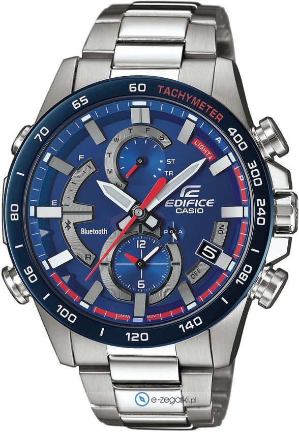 Kolekcja Casio Edifice Bluetooth to wyjątkowe modele, które zgodnie z sugerowaną nazwą serii charakteryzują się posiadaniem opcji bluetooth. Synchronizacja zegarka ze smartfonem odbywa się za pomocą aplikacji Casio Watch +. Ta wyjątkowa opcja pozwala na zarządzanie zegarkiem z poziomu smartfonu, przez co korzystanie z tego zegarka zwiększa możliwości, które mamy do dyspozycji. Casio Edifice Bluetooth to inny wymiar obecnego luksusu i coś więcej niż tylko Casio - to w zasadzie smartwatch.