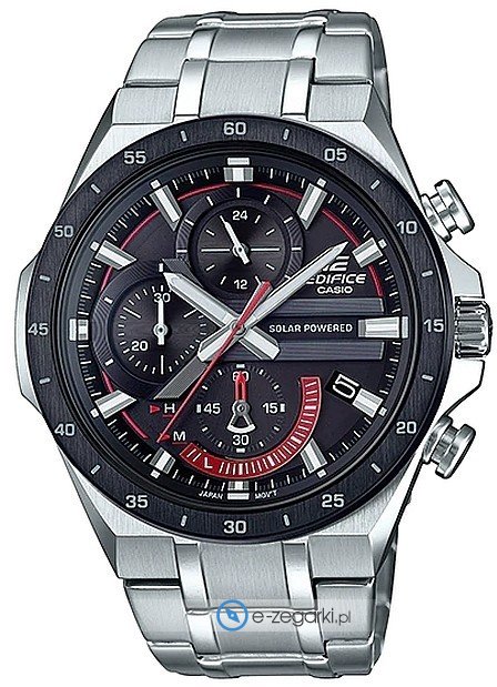 Zegarek męski EQS-920DB-1AV z rodziny Casio Edifice marki Casio. Charakteru nadaje wysokiej jakości tarcza w kolorze czarnym. Zaprezentowana metodą analogową aktualna godzina jest czytelna i szybka do sprawdzenia. Koperta jest pokryta kolorem srebrnym szeroka jest na 48 mm oraz ma grubość 13 mm - w kształcie okrągłym.
