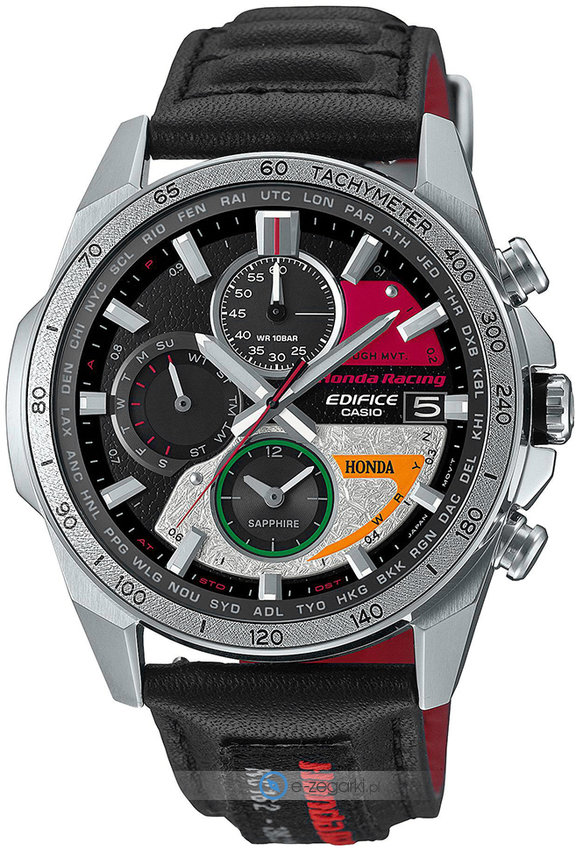 Zegarek EQW-A2000HR-1AER HONDA RACING posiada mechanizm solarny zasilany dowolnym źródłem światła. Pasek jest w kolorze czarnym zrobiony jest z wysokiej klasy skóry zapewniającej trwałość i komfort noszenia.