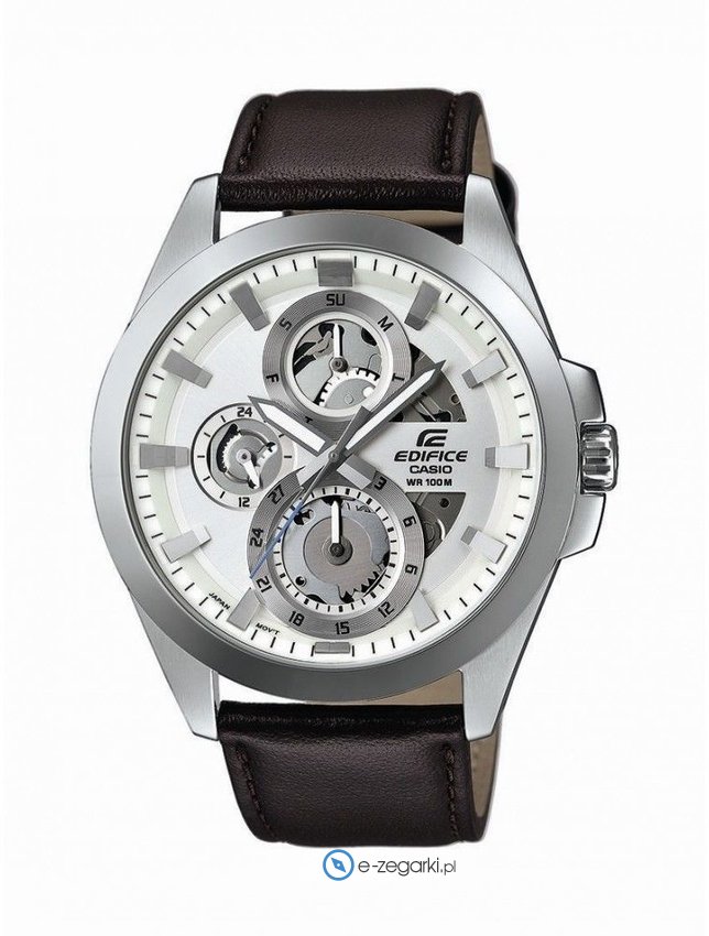 Męski zegarek ESK-300L-7AVUEF z kolekcji Casio Edifice marki Casio to połączenie stylu oraz oryginalnych mechanizmów. Charakteru dodaje wysokiej klasy tarcza w kolorze białym. Zegarek ten pokazuje godzinę w formacie analogowym dzięki czemu odczyt jest bardzo łatwy. Koperta jest ozdobiona kolorem srebrnym szeroka jest na 46 mm oraz ma grubość 11 mm - ma okrągły kształt.