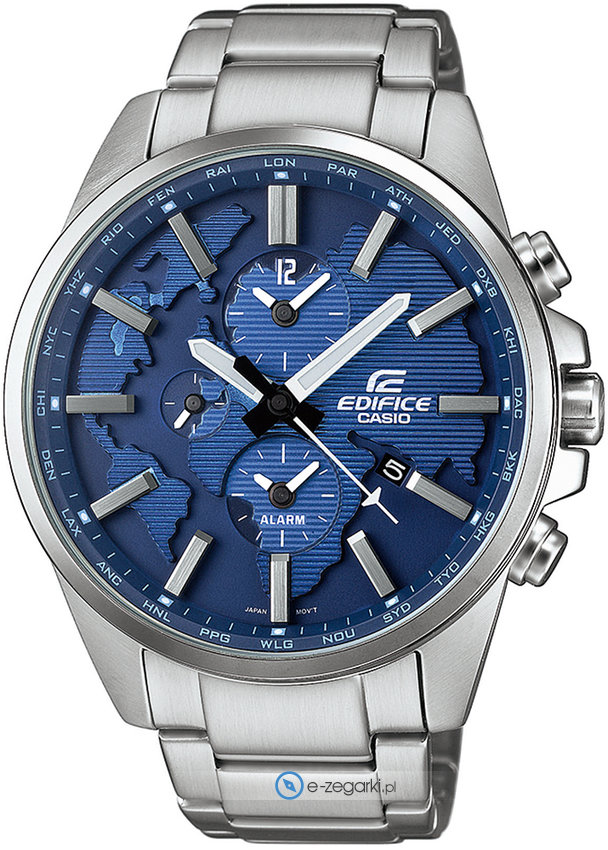 Zegarek męski ETD-300D-2AVUEF marki Casio to stylowe połączenie funkcjonalności oraz modnego designu. Model ten w gamie innych zegarków tego producenta występuje w kolekcji Casio Edifice. Charakterystyczną konstrukcję czasomierza osiągnięto z pomocą tarczy w kolorze niebieskim. Zaprezentowana metodą analogową bieżąca godzina jest czytelna i szybka do odczytania. Koperta szeroka jest na 46 mm oraz ma grubość 14 mm.