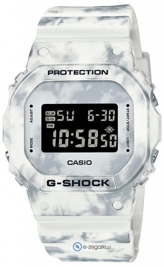 Zasilanie zegarka DW-5600GC-7ER to klasyczna bateria kwarcowa. Pasek w tonacji koloru białego zrobiony jest z wysokiej jakości tworzywa sztucznego.