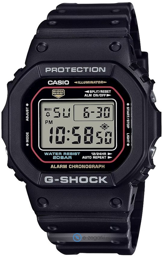Męski zegarek DW-5600RL-1ER z kolekcji Casio G-Shock marki Casio to połączenie estetyki i nowatorskich mechanizmów. Wysokiej jakości cyferblat zegarka pokryto czarnym kolorem. Zegarek ten pokazuje aktualny czas w formacie cyfrowym dzięki temu odczyt jest bardzo łatwy. Koperta jest w kolorze czarnym szeroka jest na 43 mm oraz ma grubość 13 mm - w kształcie prostokątnym.