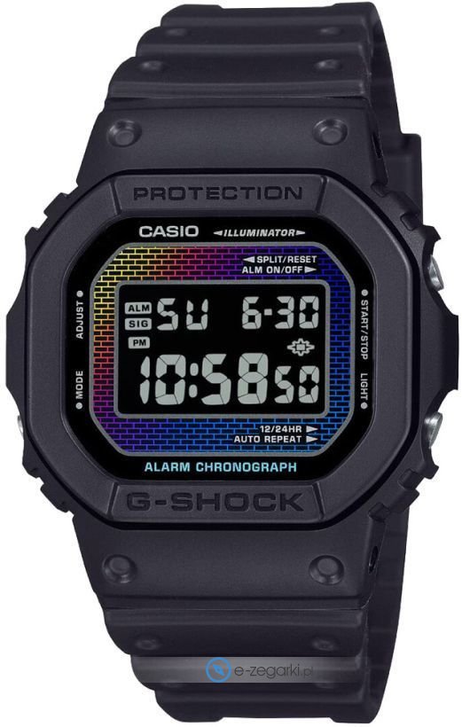 Zegarek DW-5600RW-1ER marki Casio to gustowny zegarek naręczny męski, który posiada pomysłowe rozwiązania i funkcje. Model ten jest z kolekcji Casio G-Shock. Wysokiej trwałości cyferblat zegarka pokryto czarnym kolorem. Zegarek ten prezentuje godzinę w formacie cyfrowym dzięki czemu odczyt jest intuicyjny. Koperta w odcieniach koloru czarnego szeroka jest na 48.9 mm oraz ma grubość 13.4 mm - cechuje się prostokątnym kształtem.