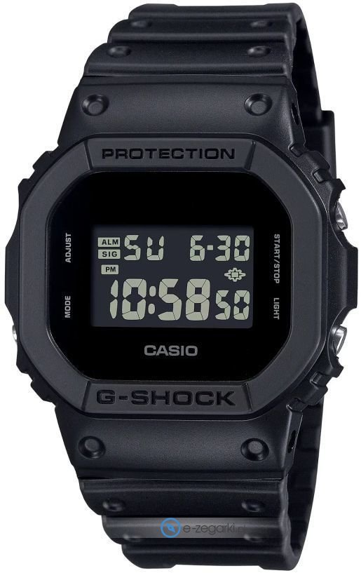Męski zegarek DW-5600UBB-1ER z serii Casio G-Shock marki Casio to połączenie estetyki oraz nieprzeciętnych mechanizmów. Wysokiej trwałości cyferblat zegarka ozdobiono czarnym kolorem. Pokazana metodą cyfrową bieżąca godzina jest czytelna i łatwa do odczytania. Koperta w odcieniach koloru czarnego szeroka jest na 48.9 mm oraz ma grubość 13.4 mm - w kształcie prostokątnym.
