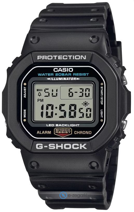 Męski zegarek DW-5600UE-1ER z kolekcji Casio G-Shock marki Casio to połączenie smaku i oryginalnych mechanizmów. Wysokiej trwałości cyferblat zegarka ozdobiono czarnym kolorem. Pokazana metodą cyfrową bieżąca godzina jest czytelna i łatwa do odczytania. Koperta w barwach koloru czarnego szeroka jest na 43 mm oraz ma grubość 13 mm - ma prostokątny kształt.