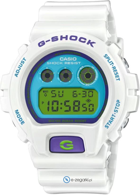 Zegarek męski DW-6900RCS-7ER marki Casio należy do serii Casio G-Shock. Stylu dodaje wysokiej klasy tarcza w kolorze niebieskim. Zegarek ten pokazuje godzinę w formacie cyfrowym dzięki czemu odczyt jest intuicyjny. Koperta jest w kolorze białym szeroka jest na 50 mm oraz ma grubość 16 mm - w kształcie okrągłym.
