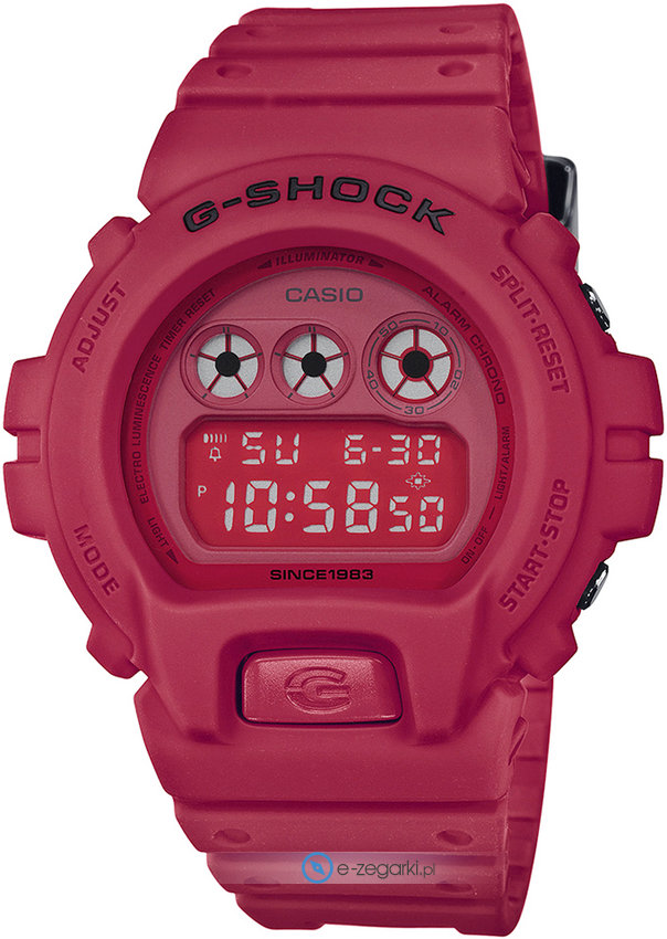 Zegarek męski DW-6935C-4ER marki Casio należy do rodziny Casio G-Shock. Charakterystyczny wygląd zegarka osiągnięto m.in. poprzez cyferblat w kolorze czerwonym. Godzina prezentowana jest w sposób cyfrowy co bez trudu pozwala ją odczytać. Koperta szeroka jest na 50 mm oraz ma grubość 16 mm.