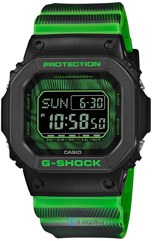 Casio DW-D5600TD-3ER to męski zegarek kierowany dla osób szukających zegarka z rodziny Casio G-Shock. Niestereotypowy wygląd czasomierza osiągnięto m.in. poprzez tarczę w kolorze zielonym. Aktualna godzina przedstawiona jest w sposób cyfrowy co intuicyjnie pozwala ją odczytać. Koperta jest w kolorze czarnym szeroka jest na 43 mm oraz ma grubość 13 mm.