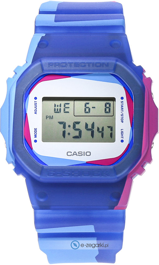 Zasilanie zegarka DWE-5600PR-2ER to normalna bateria kwarcowa. Pasek niebieskiego koloru zrobiony jest z wysokiej jakości tworzywa sztucznego.