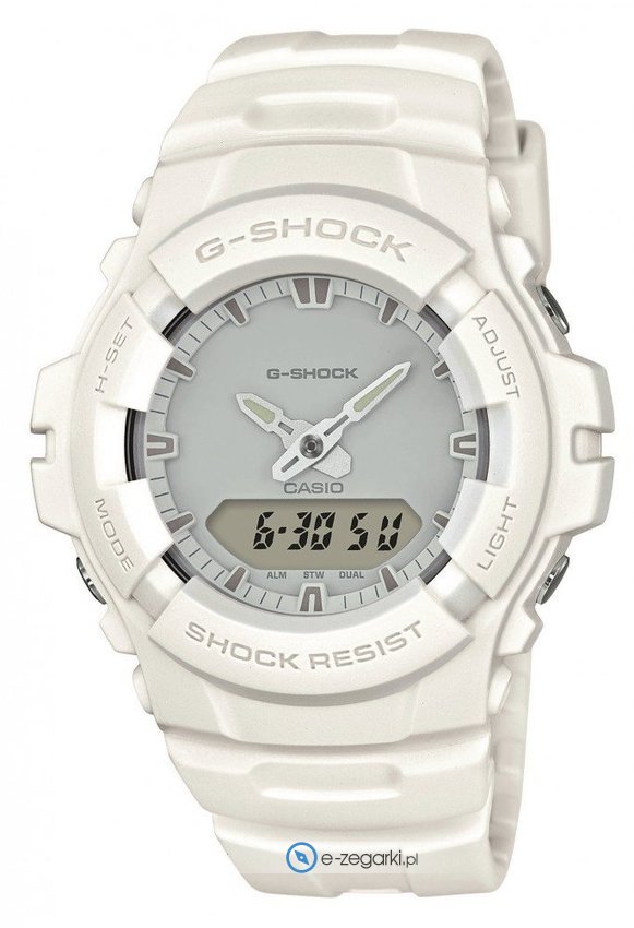 Męski zegarek G-100CU-7AER z serii Casio G-Shock marki Casio to połączenie stylu oraz nowatorskich mechanizmów. Aktualna godzina zaprezentowana jest w sposób analogowo - cyfrowy co niezmiernie łatwo pozwala ją odczytać. Koperta szeroka jest na 44 mm oraz ma grubość 15 mm.