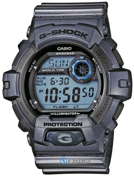 Model męski G-8900SH-2ER zalicza się do rodziny Casio G-Shock marki Casio. Charakterystyczny wygląd zegarka osiągnięto również dzięki tarczy w kolorze niebieskim. Godzina zaprezentowana jest w sposób cyfrowy co intuicyjnie pozwala ją odczytać. Koperta w odcieniach koloru niebieskiego - charakteryzuje się okrągłym kształtem.