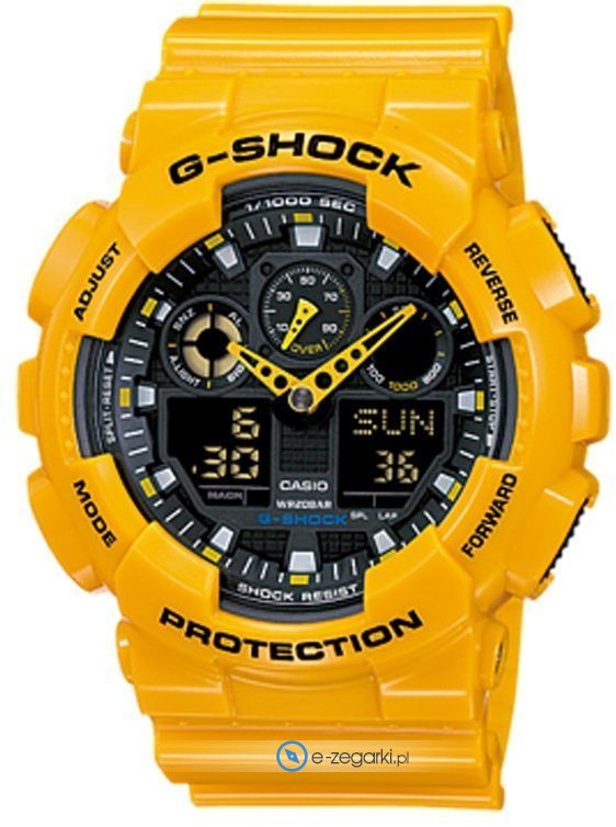 Zasilanie zegarka GA-100A-9AER to normalna bateria kwarcowa. Zwiększona odporność na wstrząsy oraz uderzenia zapewniona przez system wstrząsoodporny.
