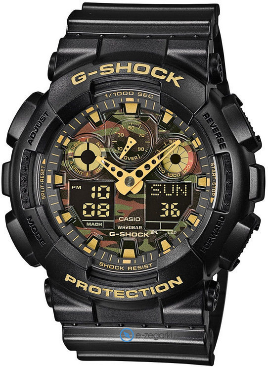 Zegarek GA-100CF-1A9ER wyposażony jest w mechanizm zasilany standardową baterią kwarcową. System wstrząsoodporny chroni zegarek przeciwko wstrząsom i uderzeniom.