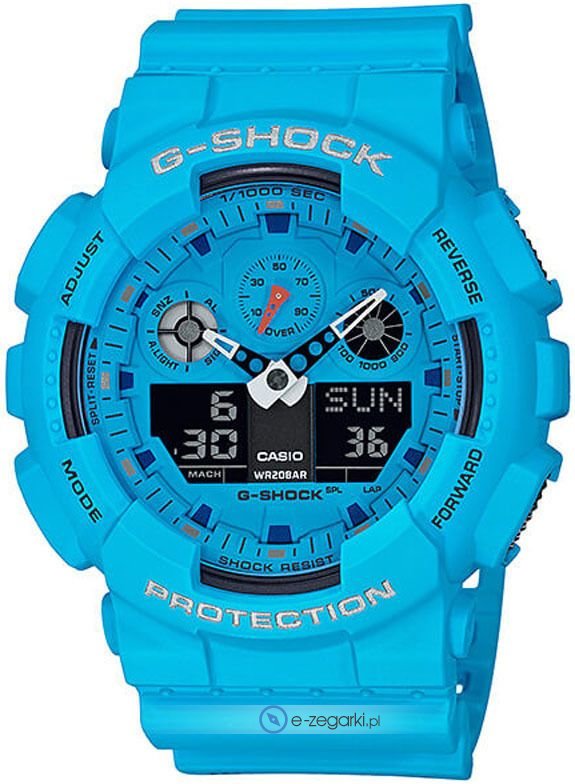 Casio GA-100RS-2AER - męski zegarek przeznaczony dla osób szukających zegarka z rodziny Casio G-Shock. Zegarek ten prezentuje godzinę w formacie analogowo - cyfrowym dzięki temu odczyt jest bezproblemowy. Koperta szeroka jest na 51.2 mm oraz ma grubość 16.9 mm - ma okrągły kształt.