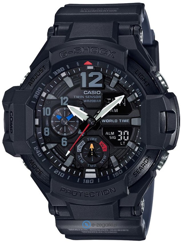 Czasomierze G-Shock Gravitymaster to rewelacyjne narzędzia do zadań specjalnych. Poziom wodoszczelności zapewnia wytrzymałość 20 Bar, natomiast wzmocniona budowa daje odporność na duże wstrząsy lub silne uderzenia. Seria dedykowana jest w szczególności do entuzjastów sportów wyczynowych oraz nurków. Niezależnie, czy znajdziesz się na niebotycznych wysokościach, czy w ciemnych głębinach, Gravitymaster nie zawiedzie, nigdy! Część modeli została zaopatrzona w zawór helowy, który pozwala na wyrównanie stosunków ciśnień.