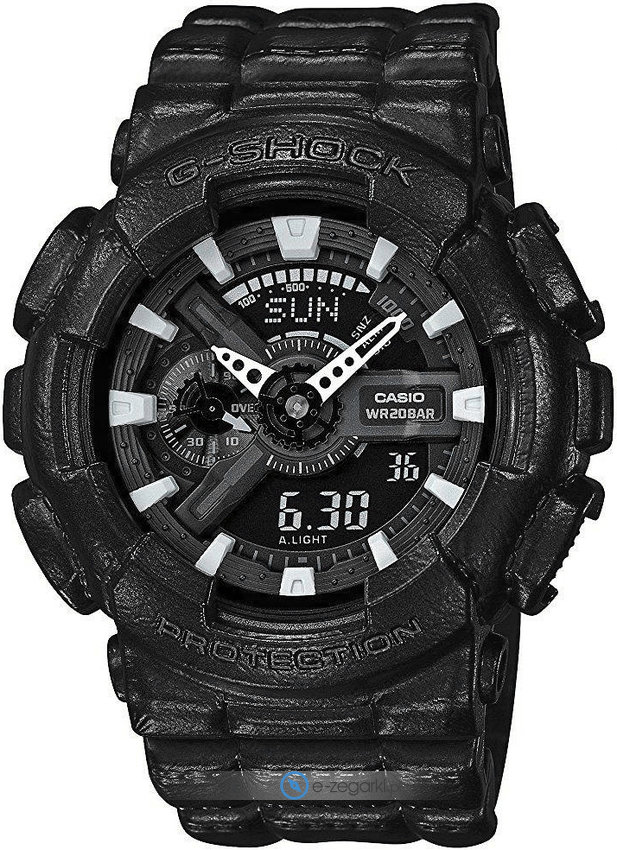 Męski zegarek GA-110BT-1AER z serii Casio G-Shock marki Casio to połączenie stylu oraz pomysłowych mechanizmów. Cyferblat zegarka w kolorze czarnym. Zegarek ten prezentuje godzinę w formacie analogowo - cyfrowym dzięki czemu odczyt jest intuicyjny. Koperta została ozdobiona kolorem czarnym szeroka jest na 51 mm oraz ma grubość 13 mm - w kształcie okrągłym.