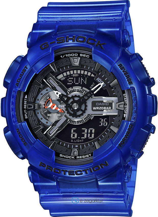 Zegarek GA-110CR-2AER zasilany jest za pomocą baterii kwarcowej. Zwiększona odporność na wstrząsy oraz uderzenia zapewniona przez system wstrząsoodporny.