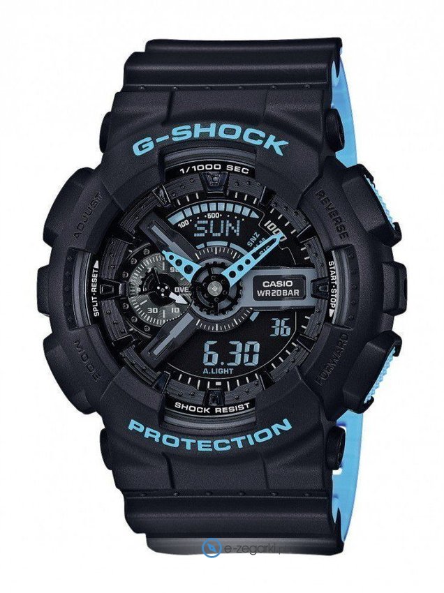 Zasilanie zegarka GA-110LN-1AER to standardowa bateria kwarcowa. Zwiększona odporność na wstrząsy oraz uderzenia zapewniona przez system wstrząsoodporny.
