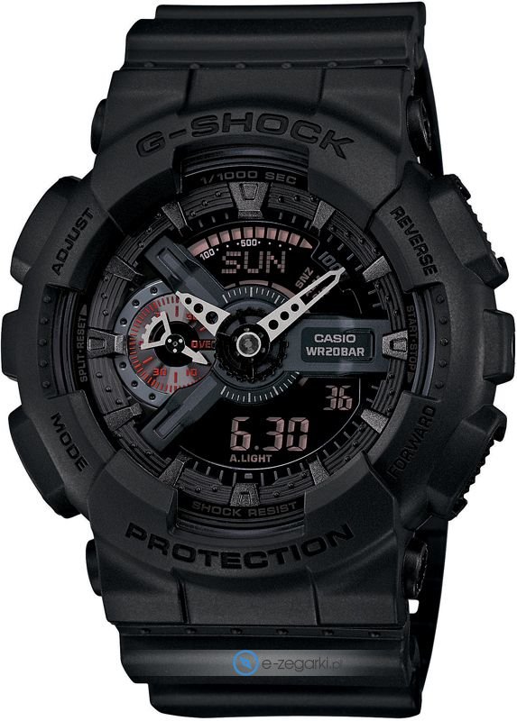 Zasilanie zegarka GA-110MB-1AER to normalna bateria kwarcowa. System wstrząsoodporny zapewnia bezpieczeństwo zegarka w każdych warunkach, dzięki temu masz pewność, że zegarek nie zostanie uszkodzony nawet w trudnych,ekstremalnych sytuacjach.