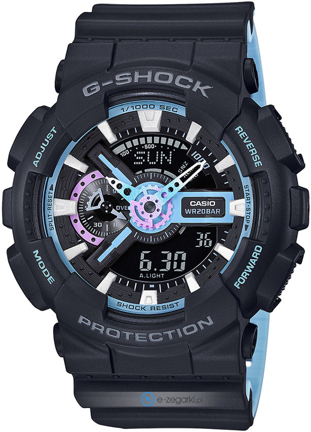Zegarek GA-110PC-1AER zasilany jest bateryjnie - ogniwo kwarcowe. System wstrząsoodporny zapewnia bezpieczeństwo zegarka w każdych warunkach, dzięki temu masz pewność, że zegarek nie zostanie uszkodzony nawet w trudnych,ekstremalnych sytuacjach.