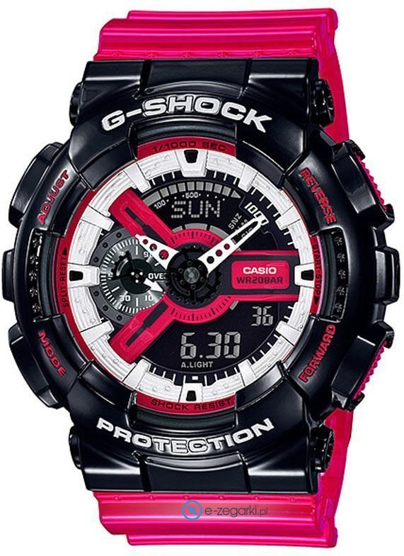 Zegarek GA-110RB-1AER wyposażony jest w mechanizm zasilany standardową baterią kwarcową. Zwiększona odporność na wstrząsy oraz uderzenia zapewniona przez system wstrząsoodporny.