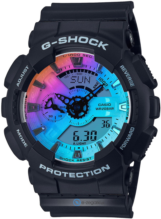 Zegarek GA-110SR-1AER wyposażony jest w mechanizm zasilany klasyczną baterią kwarcową. Pasek koloru czarnego wykonany jest z wysokiej jakości tworzywa sztucznego.