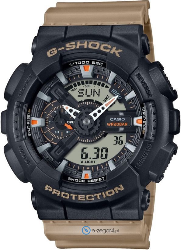 Casio GA-110TU-1A5ER to męski zegarek przeznaczony dla osób szukających zegarka z kolekcji Casio G-Shock. Cyferblat zegarka jest w kolorze czarnym. Zegarek ten pokazuje godzinę w formacie cyfrowym dzięki czemu odczyt jest intuicyjny. Koperta jest w kolorze czarnym szeroka jest na 51 mm oraz ma grubość 17 mm - posiada okrągły kształt.