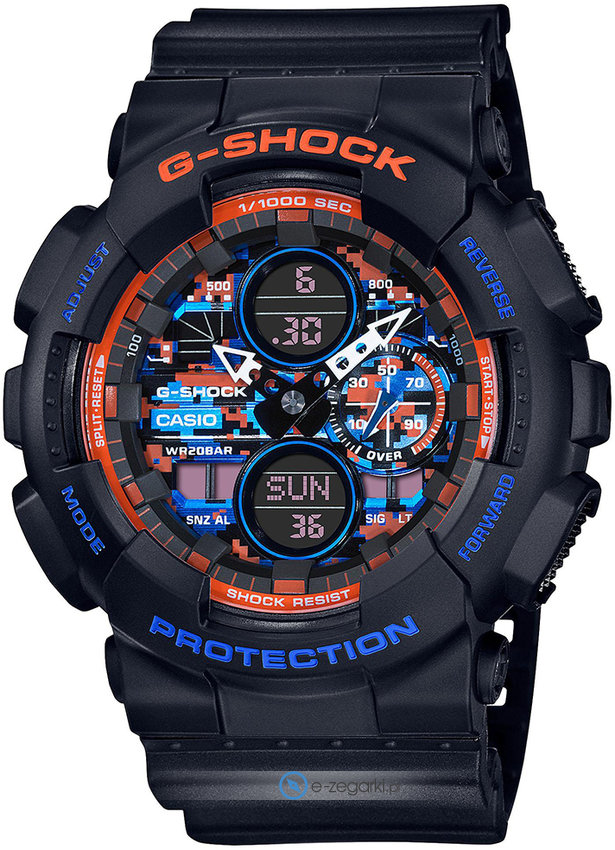 Zegarek męski GA-140CT-1AER marki Casio to idealne połączenie funkcjonalności oraz modnego wzornictwa. Model ten pochodzi z kolekcji Casio G-Shock. Aktualna godzina prezentowana jest w sposób analogowo - cyfrowy co bez trudu pozwala ją odczytać. Koperta szeroka jest na 51 mm oraz ma grubość 16 mm - charakteryzuje się okrągłym kształtem.