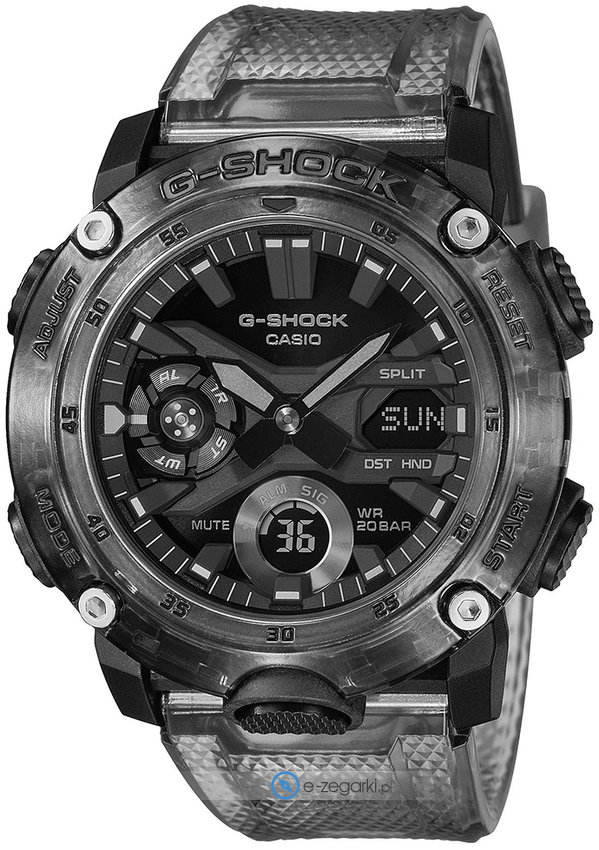 Zegarek męski GA-2000SKE-8AER marki Casio to stylowe połączenie funkcjonalności oraz ciekawego wzornictwa. Model ten należy do kolekcji Casio G-Shock. Zegarek ten prezentuje godzinę w formacie analogowo - cyfrowym dzięki czemu odczyt jest intuicyjny. Koperta szeroka jest na 49 mm oraz ma grubość 14 mm - charakteryzuje się okrągłym kształtem.