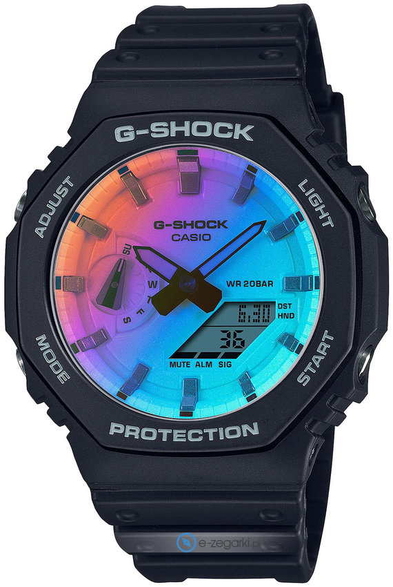 Zegarek męski GA-2100SR-1AER marki Casio to stylowe połączenie funkcjonalności i modnego designu. Model ten w gamie innych zegarków tego producenta występuje w serii Casio G-Shock. Zegarek ten prezentuje godzinę w formacie analogowo - cyfrowym dzięki czemu odczyt jest bezproblemowy. Koperta jest w kolorze czarnym szeroka jest na 45 mm oraz ma grubość 12 mm - ma okrągły kształt.