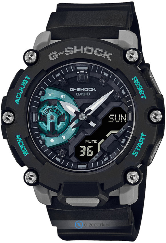 Zegarek GA-2200M-1AER posiada kwarcowy mechanizm zasilany tradycyjną baterią. System wstrząsoodporny chroni zegarek przeciwko wstrząsom i uderzeniom.