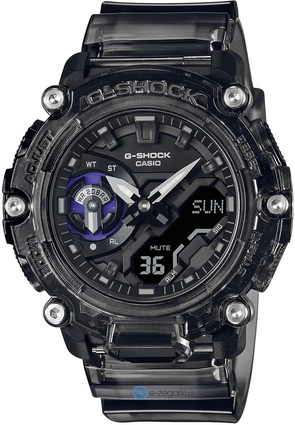 Zegarek GA-2200SKL-8AER posiada kwarcowy mechanizm zasilany tradycyjną baterią. Pasek koloru czarnego wykonany jest z wysokiej jakości tworzywa sztucznego.