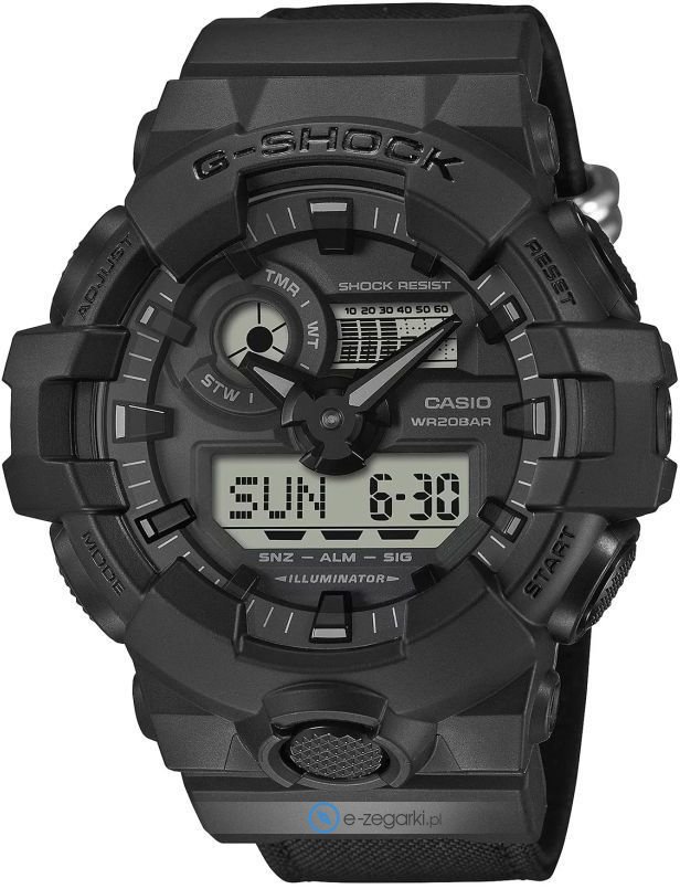 Model GA-700BCE-1AER posiada mechanizm zasilany normalną baterią kwarcową. Pasek w tonacji koloru czarnego wykonany jest z wysokiej jakości tworzywa sztucznego.