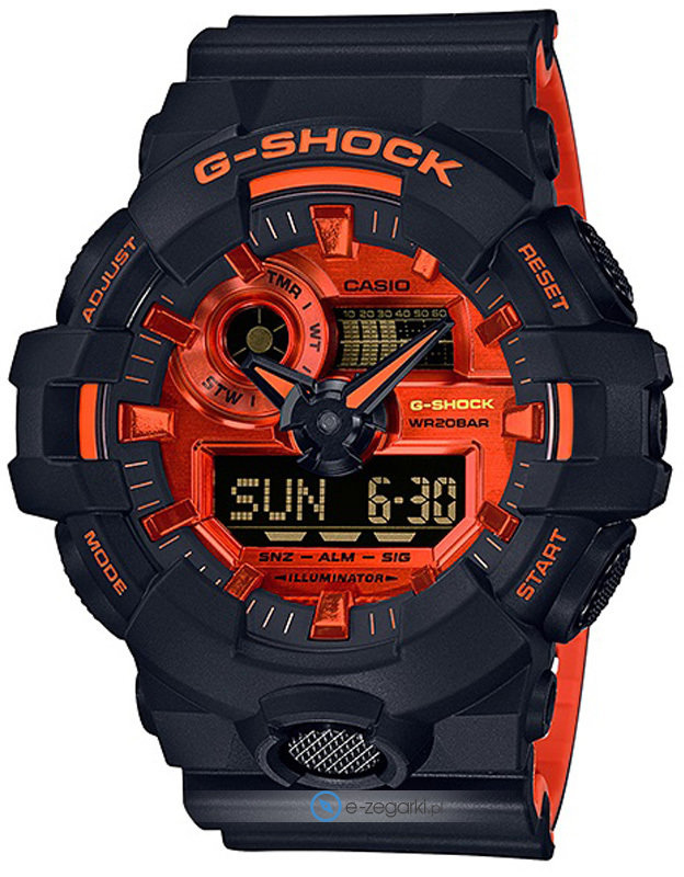 Casio od lat ugruntowuje swoją pozycję jako lider w produkcji zegarków, łącząc japońską niezawodność z innowacyjnymi technologiami. Model GA-700BR-1AER to kwintesencja tego podejścia. Jego wyrazisty design, oparty na kontrastowym połączeniu czerni i pomarańczy, idealnie wpisuje się w dynamiczny styl życia.